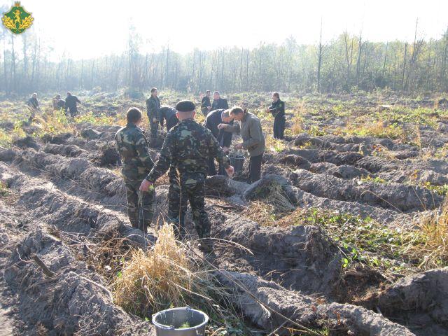 Зруб переораний рівними рядками, які доходили до самого лісу, очікував людей і їх праці. Осінню лісову дрімоту розбудили людські голоси, скрегіт металевих ланцетів, гуркіт машин. До лісу прийшли люди. Лісівники. І не з пустими руками. У відрах привезли зі собою в основному саджанці сосни і дуба. Тількино стало в зеніті сонце і огорнуло своїм осіннім теплом землю, працівники Низівського лісництва, гості взялися до роботи, бо осінній день короткий, треба встигнути до темна. Лісничий Ігор Бочилюк роздавав реманент та саджанці. Люди ставали по двоє на ряд. Працівники лісництва вправно взялися за роботу. А помічники: голова Сокальської районної ради Ігор Дацюк, начальник та працівник відділу управління комунальним майном Cокальської райради Тарас Кравчук та Іван Монянчин, пройшовши, як то кажуть, інструктаж, не відставали від професіоналів. Робота спорилася. А ще незадовго до товариства приєдналися директор лісового господарства ДП «Жовківське лісове господарство» Роман Колісник та депутат районної ради, головний лікар Белзької лікарні Сергій Касян, міський голова Великих Мостів Ярослав Ройко. Жартували. Саджаючи саджанці сосни звичайної, деякі з них завбільшки з мізинець на руці, не вірилось, що з них колись виростуть стрункі сосни. Та лісники мене запевняли, що так воно і буде, жартуючи, запрошували приїхати у цей бір через вісімдесят років, то тут сосни підпиратимуть небо, а під розлогими кронами дуба червонолистого можна буде знайти затишок і прохолоду. Але, щоб цей бір був саме таким, лісникам треба добре попрацювати.