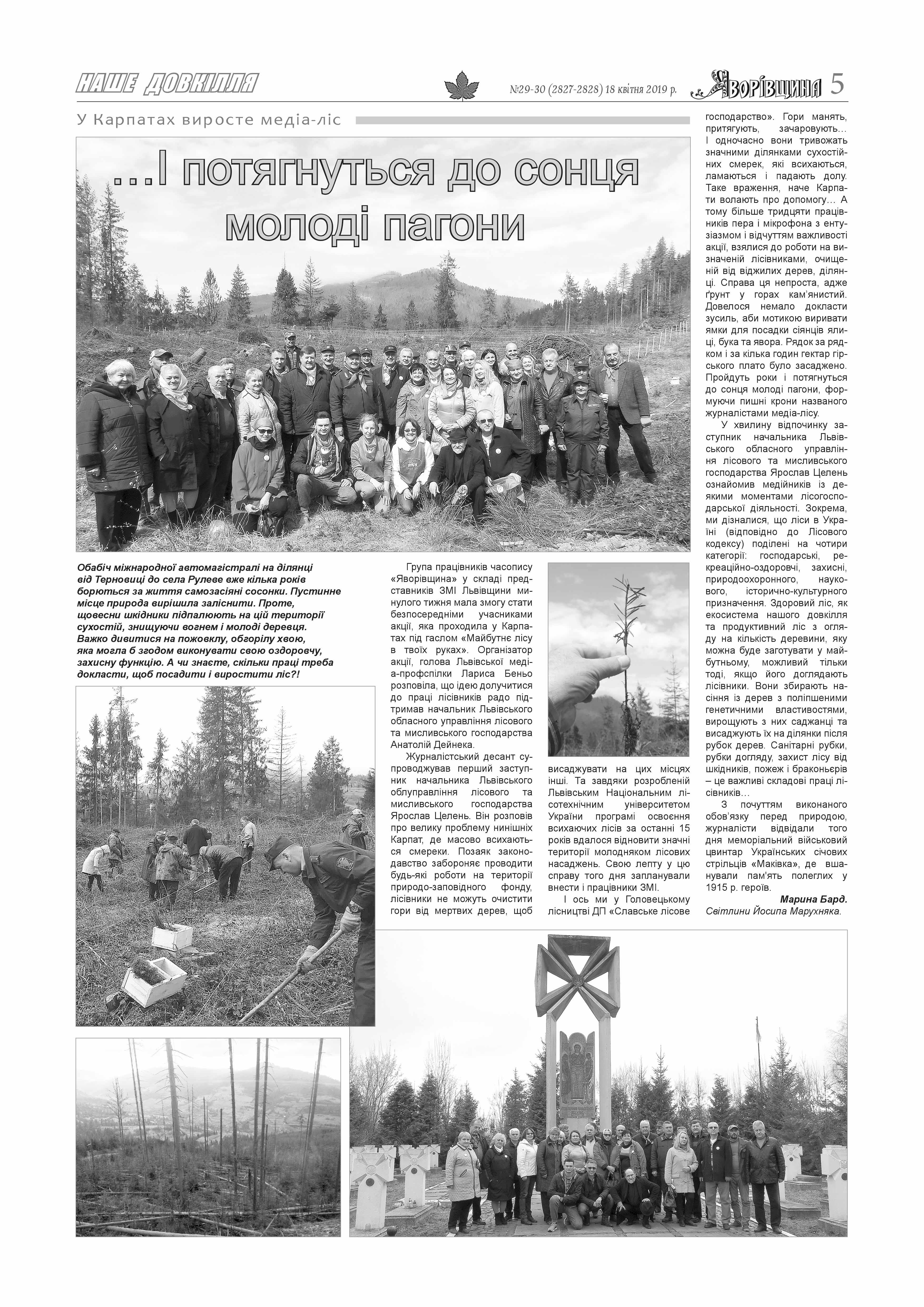 У Головецькому лісництві ДП «Славське лісове господарство» росте "Медіа-ліс" . Журналісти Львівщини з любов’ю та натхненням посадили сіянці ялиці, бука та явора.