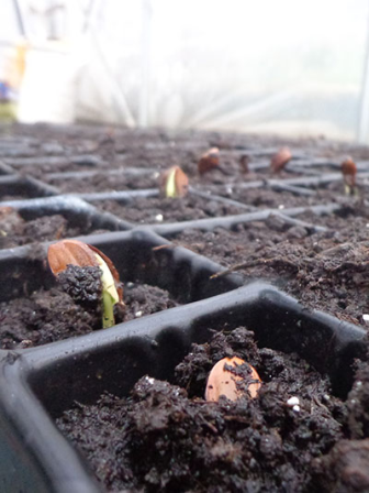 Провівши у відповідності всі заходи ми отримали вже перші паростки бука лісового 1-4 квітня (фото).