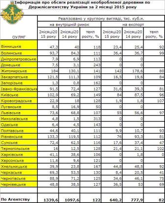 У січні-лютому поточного року підприємства галузі зменшили на 18% обсяги поставок лісопродукції у круглому вигляді на зовнішній ринок. Натомість збільшили на 22% обсяги поставок деревини на внутрішній ринок.