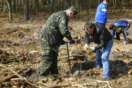 Садіння молодого лісу відбувалося, звичайно ж, за участі працівників підприємства, учнів Зозулівського ,,Шкільного лісництва”. До акції долучилися також головний редактор газети "Народне слово" Володимир Дідула та представники інформаційного порталу "ЗОЛОЧІВ.НЕТ".