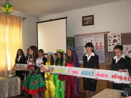 Юні лісівники зустріли гостей привітно і урочисто. Учні середніх та старших класів підготували виступ-вітання на тему «Ліс - багатство України і ми маємо його зберегти», в якому у віршованій та пісенній формі розповіли присутнім як важливо оберігати природу та дбайливо ставитись до лісів.