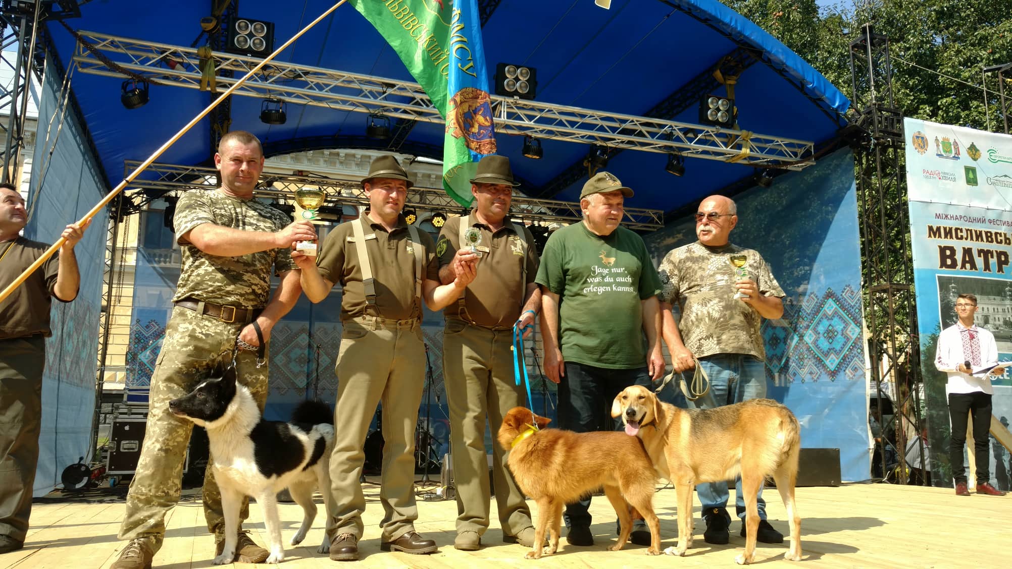 Далі на сцену запрошують почесних гостей заходу. А це представники обласної та районної влади, віце-президент Громадської спілки «Асоціації мисливців та користувачів мисливських угідь», начальник Львівського обласного управління лісового та мисливського господарства, директор підприємства «Галсільліс», голова мисливського колективу з Угорщини, мисливці Ольштинського воєводства з Польщі.