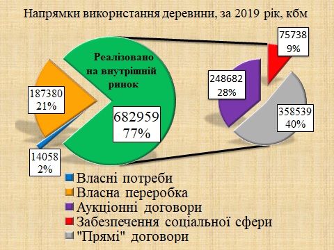 Підприємствами управління від всіх видів рубок заготовлено 888,8 тис. кбм. деревини, в тому числі на рубках головного користування – 478,9 тис. кбм.