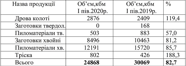 Незважаючи на введені в більшості країн світу обмежувальні карантинні заходи держлісгоспи управління в І півріччі 2020 року не припинили поставки оброблених лісоматеріалів на експорт. Спад ділової активності в світі привів до зменшення попиту на певні види продукції переробки, що виробляють наші держлісгоспи. Це стосується в основному пиломатеріалів та заготовок шпилькових порід, що привело до незначного пониження цін на дану продукцію. Попит на інші види продукції переробки, що виробляють наші лісгоспи (дрова колоті, тріска, пиломатеріали твердих порід) залишився на рівні минулого року.