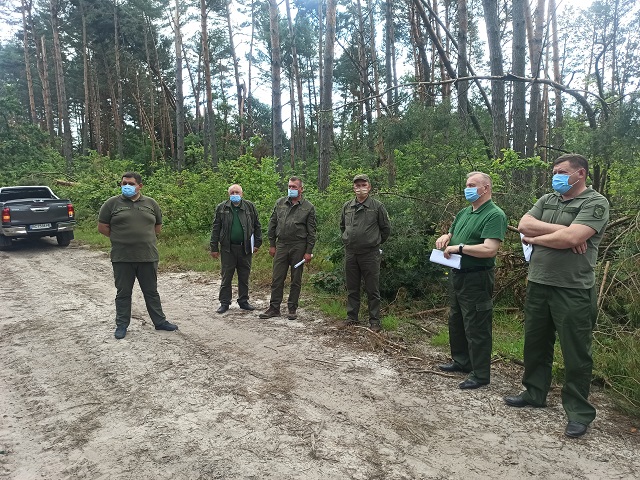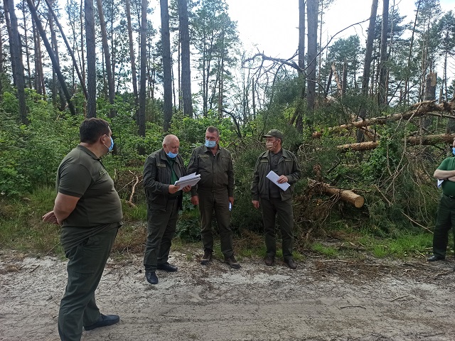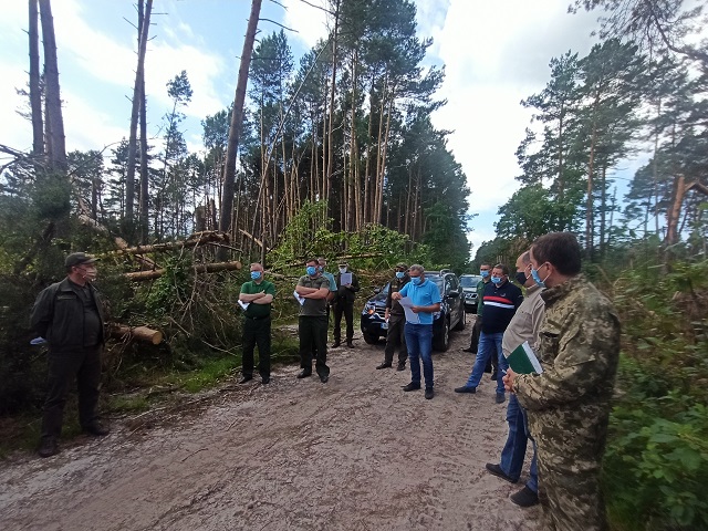 Учасники наради оглянули наслідки буревію та стан пошкоджених насаджень. Керівник підприємства Косовський А. П. доповів про проведену лісгоспом роботу після стихії та звернувся до директорів лісогосподарських підприємств про допомогу в розробці буреломів. Він зазначив, що лісгосп має достатню кількість лісозаготівельних бригад для розробки. Однак потребує додатково 7 одиниць трелювальної техніки. Оскільки терміни розробки насаджень дуже короткі, необхідна допомога сусідів.