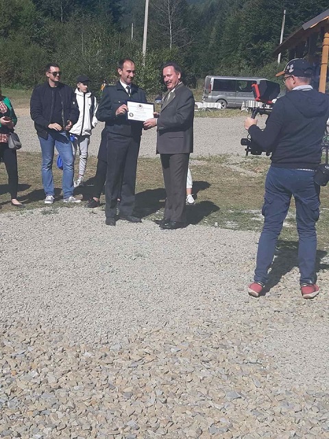 У своєму виступі Дейнека А.М. відмітив, що сьогоднішні заходи відбуваються в переддень святкування професійного свята лісівників - Дня працівника лісу. Керівник Львівського ОУЛМГ подякував колективу НПП «Сколівські Бескиди» за плідну працю задля збереження біорізноманіття, привітав зі святом та вручив вітальні Грамоти та Подяки.