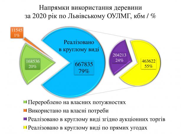 Для власних потреб лісогосподарськими підприємствами використано 11,5 тис. кбм деревини (дров’яна деревини для опалення виробничих та адміністративних приміщень), або 1,4 % відповідно.