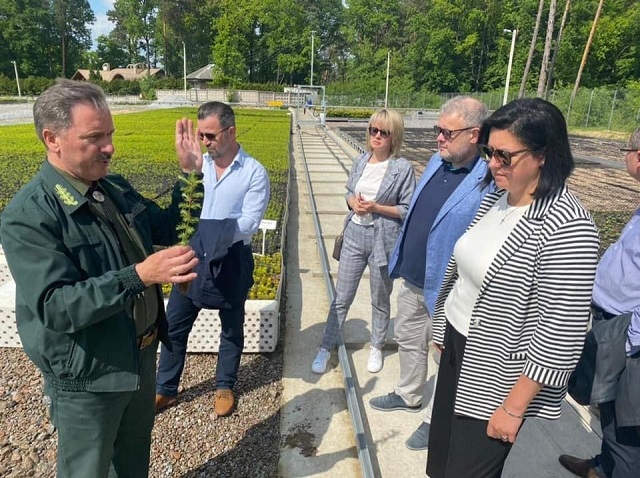 Члени президії побували у теплицях та на полях дорощування, де проростає насіння та ростуть сіянці сосни, модрини, ялиці, ялини, бука, дуба.