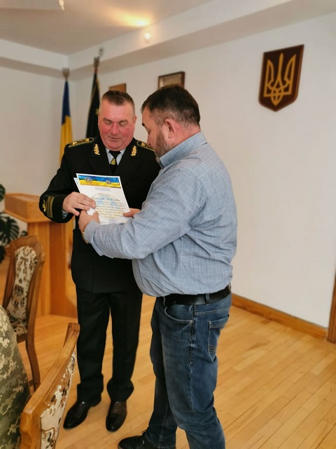 Степан Білас вручив Подяки ГО «Спілка учасників бойових дій в АТО, ООС Добровольців та волонтерів «Побратими об’єднані»: Целеню Ярославу Павловичу – першому заступнику начальника Львівського ОУЛМГ, Бурмасу Василю Романовичу – начальнику відділу охорони, захисту лісу та мисливського господарства, Бойко Остапу Зіновійовичу - директору ДП «Сколівське лісове господарство» за благодійну допомогу в скрутний для країни час бійцям Операції Об’єднаних Сил, які відстоюють честь і гідність рідної Батьківщини.
