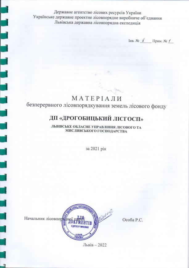 Державне підприємство «Дрогобицьке лісове господарство» відкрите для обговорення конструктивних пропозицій, щодо планування господарських заходів у 2022 році та внесення змін до Матеріалів безперервного лісовпорядкування земель лісового фонду Державне підприємство «Дрогобицьке лісове господарство» Львівське обласне управління лісового та мисливського господарства за 2021 рік.