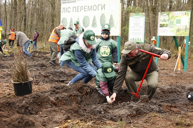 За спільної ініціативи Львівської обласної військової адміністрації, Львівського обласного управління лісового та мисливського господарства та громадської організацією «Добро.Дій», в рамках реалізації ініціативи Президента України «Зелена країна», у День довкілля лісівники разом з учасниками акції висадили «Ліс Перемоги». На території державного лісового фонду вже зростають 87 тисяч дерев на площі 37,5 га, які у майбутньому свідчитимуть про нашу перемогу. За підрахунками до масової акції «Ліс Перемоги» долучились майже 700 чоловік, серед яких родини вимушено переміщених осіб із дітьми. Розповідаємо як проходила акція локаціями державних лісогосподарських підприємств Львівського ОУЛМГ. У ДП "Бродівський лісгосп" на ділянці Берлинського лісництва висадили 7 тис сіянців сосни звичайної. Лісівники ДП «Дрогобицьке лісове господарство» на ділянках Раневицького та Бориславського лісництв висадили біля 5 тис. сіянців головних лісотвірних порід ялиці білої та дуба звичайного. У Бутинському та Липниківському лісництвах ДП «Львівський лісгосп» провели лісовідновлення на площі 1 га. У Бутинському лісництві висаджували дуби, сосни, модрини, ялини, горіхи чорні, загалом - 4990 сіянців лісових порід. У Липниківському лісництві спільно з колективом IT-компанії Gameloft висадили 1000 сіянців дуба звичайного, 500 сіянців ялиці білої та ще три сотні деревець лип. Працівниками ДП "Золочівський лісгосп" в Словітському та Сасівському лісництвах на двох ділянках загальною площею 2,0 га висаджено понад 6 тис. саджанців хвойних і листяних порід. У лісових масивах ДП «Рава-Руське ЛГ» понад 15 000 спільно посаджених дерев будуть нагадувати нам, що Україну не здолати! Основний захід акції пройшов у Верблянському лісництві Надлісництва «Буськ» Радехівського ЛМГ за участі Львівської обласної військової адміністрації, Львівського обласного управління лісового та мисливського господарства та ГО «Добро.Дій». Лісівникам допомагали висадити «Ліс Перемоги» десятки внутрішньо переміщених осіб, а також волонтери та громадськість. В межах заходу відбувся також телемарафон між 8 областями України, де так само висаджували дерева: Волинь, Вінниччина, Сумщина, Чернігівщина, Закарпаття та інші. На знак солідарності та підтримки до акції приєднались ще 13 країн світу. У Бабичівському лісництві ДП «Радехівське ЛМГ» висаджено понад 13 тис. шт. сіянців сосни звичайної та дуба звичайного. З молитвами і вірою в перемогу садили ліс на трьох ділянках Самбірського лісгоспу. Лісівники Мостиського лісництва, жителі сіл Черневе та Заверхи Яворівського району разом з переселенцями з Миколаївської області висадили 2640 сіянців модрини європейської. У Явірському лісництві Надлісництва «Турка» садіння лісу проводилося на ділянці колишнього сінокосу площею 1,0 га, де шкільною молоддю Явірського НВК, активістами ГО «Майдан» та лісівниками Турківщини висаджено 3000 штук дворічних сіянців ялиці білої та 1500 штук модрини європейської. В Терлівському лісництві пліч-о-пліч з працівниками Надлісництва «Старий Самбір» на ділянці в 0,9 га трудилися переселенці з Київської та Миколаївської областей, жителі села Боратичі та багато діточок. На даній ділянці висаджено 4500 штук сіянців дуба звичайного. Загалом, на площі 2,9 га у Самбірському лісгоспі учасники акції висадили 11640 сіянців основних лі