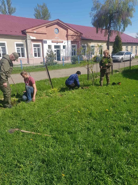 Заручившись підтримкою старости села працівники Парку озеленили прибудинкову територію Народного дому с.Сянки декоративним садивним матеріалом, вирощеним у спеціалізованому лісорозсаднику НПП «Бойківщина».