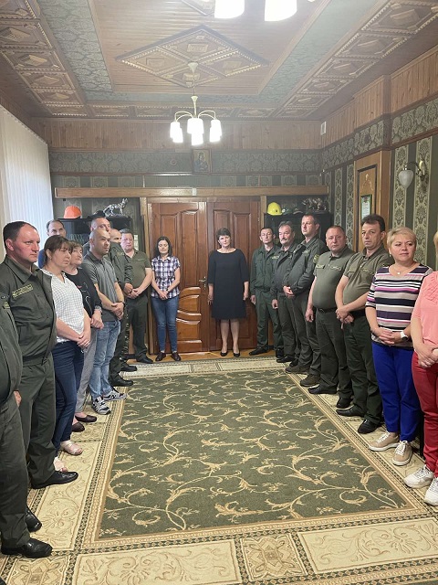 На Львівщині відбулися урочистості з нагоди професійного свята — Дня працівника лісу. Вітали сьогодні працівників лісового господарства та деревинообробників та вручали нагороди начальник Львівського обласного управління лісового та мисливського господарства Анатолій Дейнека, начальник Львівської обласної військової адміністрації Максим Козицький, заступник голови Львівської обласної ради Юрій Холод та начальник ГУ ДСНС у Львівській області Юрій Кагітін. Цьогорічне професійне свято – у часі війни. 116 лісівників Львівщини зі зброєю в руках боронять Україну на фронті. Пам'ять загиблого лісівника з національного природного парку «Сколівські Бескиди» Василя Миніва і всіх загиблих захисників України вшанували хвилиною мовчання. Анатолій Дейнека привітав присутніх працівників лісового господарства, лісової та деревинообробної промисловості з прийдешнім професійним святом – Днем працівника лісу, яке щорічно в Україні відзначається у третю неділю вересня. Професія лісівника – відповідальна, клопітка та багатогранна, спрямована на збереження та примноження лісових ресурсів для суспільства. В умовах воєнного стану лісівники активно працюють на Перемогу України! Начальник Львівської обласної військової адміністрації Максим Козицький наголосив на вагомому вкладі лісівників Львівщини у наближенні Перемоги України, подякував працівникам лісового господарства та деревиноообробникам за те, що підтримують нашу армію і сумлінно працюють на своєму фронті. Заступник голови Львівської обласної ради Юрій Холод привітав лісівників зі святом, подякував за щоденну працю та відзначив активну співпрацю працівників держлісгоспів із польськими колегами, які передають українській армії транспорт, техніку, елементи захисту та інші потрібні речі. Про невтомну працю та вагомий внесок у розвиток лісового господарства свідчили грамоти та відзнаки Державного агентства лісових ресурсів України, Львівської обласної військової адміністрації та обласної ради, які вручили кращим працівникам лісового господарства та деревинообробникам. Розвиваємо пожежно - рятувальну службу разом! З привітаннями з нагоди Дня працівника лісу від начальника ГУ ДСНС у Львівській області Юрія Кагітіна лісівники Львівського обласного управління лісового та мисливського господарства отримали 6 пожежних автомобілів від ГУ ДСНС у Львівській області для швидкого реагування та захисту лісів від пожеж. Лісівники Львівщини продовжують допомагати ЗСУ і працювати на Перемогу! З нагоди Дня працівника лісу та у рамках ініціативи голови Львівської ОВА Максима Козицького «1000 автомобілів свободи» відбулась передача 10 автомобілів від лісівників Львівщини Збройним силам України. Позашляховики лісівники придбали за власні кошти лісівників області. Автомобілі для війська та пожежні автомобілі освятив військовий Капелан отець Михайло. Після освячення позашляховики вирушили до військовослужбовців на передову. Разом до Перемоги! Довідково. Загалом, за період збройної агресії російських окупантів державними лісогосподарськими підприємствами Львівського обласного управління лісового та мисливського господарства було передано ЗСУ 111 автомобілів: 25 вантажних автомобілі та 86 позашляховиків. Також передано 35 тепловізорів та 1300 тактичних рюкзаків. Для б