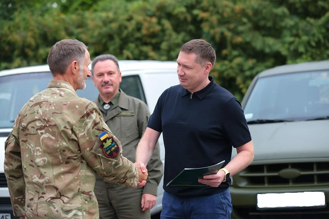 Автомобілі для війська та пожежні автомобілі освятив військовий Капелан отець Михайло. Після освячення позашляховики вирушили до військовослужбовців на передову.