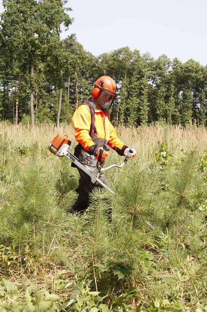 В Буському лісгоспі щорічно проводяться 2-3 разові агротехнічні або лісівничі догляди в залежності від доцільності. В одно-дворічних посадках роблять догляд з допомогою трактора та культиватора. Так швидше… Але в трирічних і старших, потрібна більш ювелірна робота, аби не пошкодити малих ще деревець. І тоді в рух іде мотокущоріз…