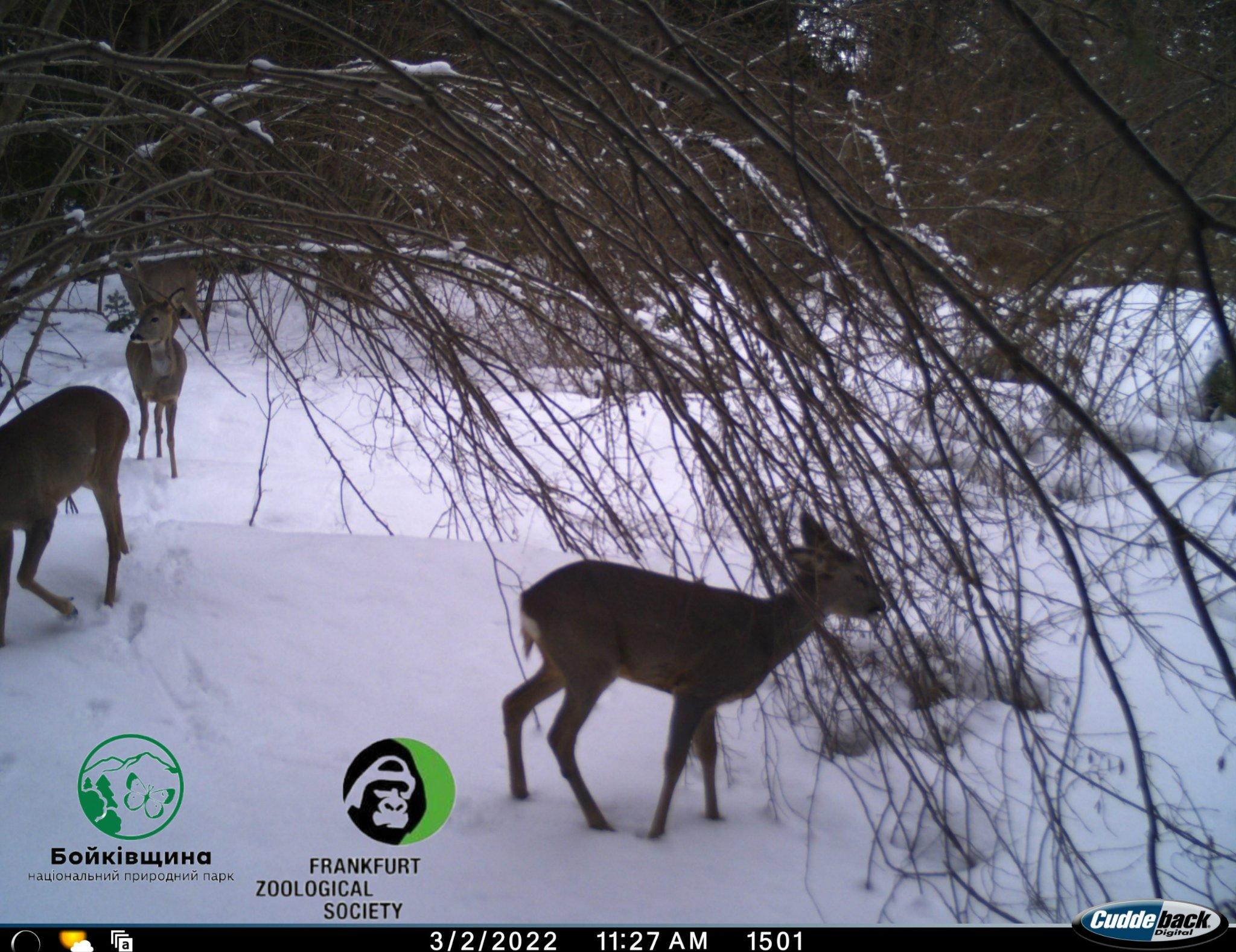 В об’єктиви фотопасток потрапили: олень благородний, козулі, лисиця, вовки, борсук, рись, зубр, дикі кабани та ін.