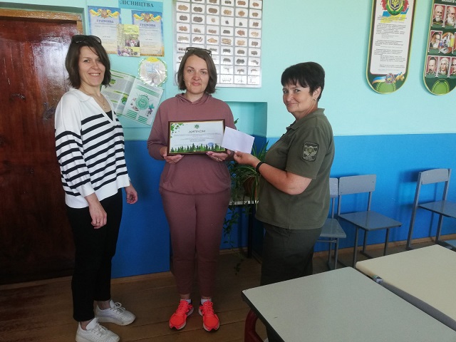 Від Всеукраїнської ради Товариства лісівників України нагородження для фіналістки вручали головний спеціаліст відділу лісового господарства Львівського ОУЛМГ Кисіль Михайло та начальник відділу лісового господарства ДП «Бродівський лісгосп» Кінаш Лідія у присутності керівника шкільного лісництва Малик Лілії.